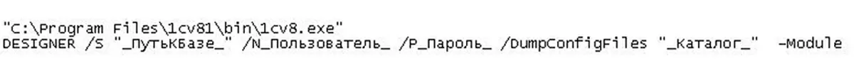 - /DumpCfg _ИмяФайла_ – запуск механизма сохранения конфигурации в файл формата cf;