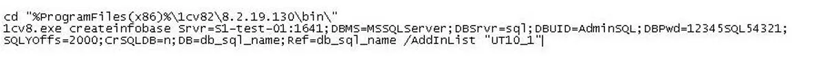 - Usr, Pwd, Locale – параметрами задаются имя, пароль, установки базы для региона, соответственно.