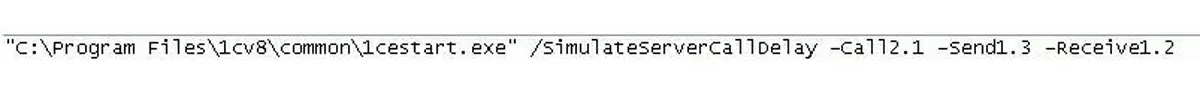 - /SimulateServerCallDelay _ДопПараметры_ – параметр позволяет включить имитацию медленного соединения. В качестве переменной _ ДопПараметры _ используется строка из следующих значений, причем использоваться они могут в любой комбинации и поодиночке: