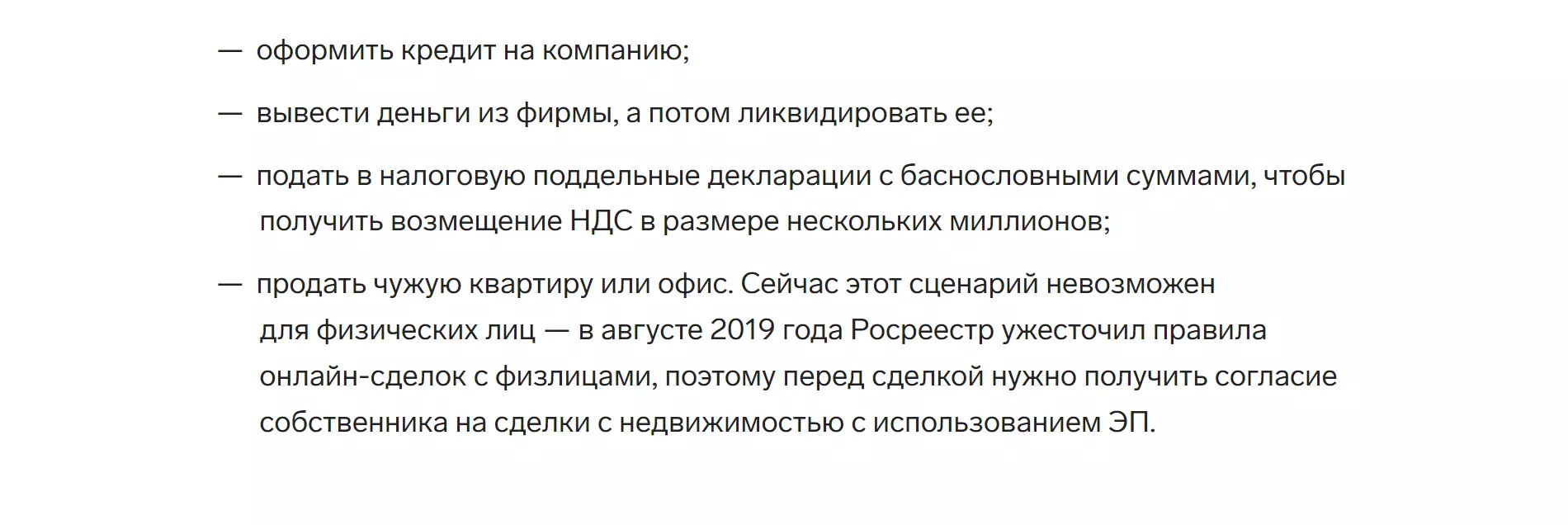 Пользоваться чужой электронной подписью равнозначно использованию чужого паспорта. Доступные махинации с электронной подписью: