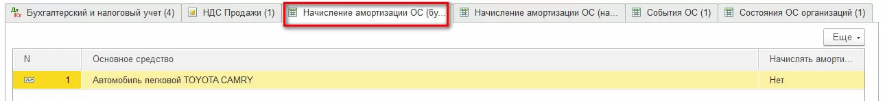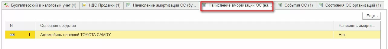 Так, регистры сведений «Начисление амортизации (БУ)» и «Начисление амортизации (НУ)» имеют записи после передачи ОС: