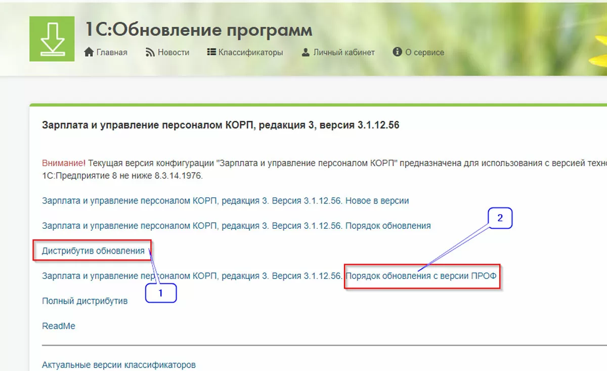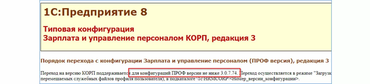 На этой же странице можно найти (по ссылке 2) краткое описание порядка обновления с версии ПРОФ, где указан номер релиза 1С ЗУП ПРОФ, начиная с которого применима описываемая нами инструкция.