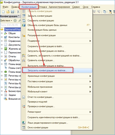 *Не пытайтесь обновить таким образом программу 1С ЗУП КОРП на платформе 1С 8.2. Это так называемая «ЗУП 2.5», более старая версия. Это невозможно сделать простой загрузкой конфигурации, нужно будет переносить данные.