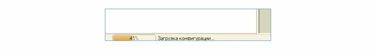 Мы спокойно нажимаем «Да», ведь базу мы сохранили и нам не страшно ее испортить (это может случиться, если мы взяли «левый» файл «СF», а не скачали его с партнерского сайта, а также еще по очень многим причинам). Далее наблюдаем, как происходит загрузка новой конфигурации.
