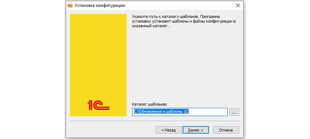 Из этой папки запускаем файл «setup». Он установит дистрибутив обновления в директорию, где хранятся шаблоны 1С. Эту директорию можно поменять при установке.