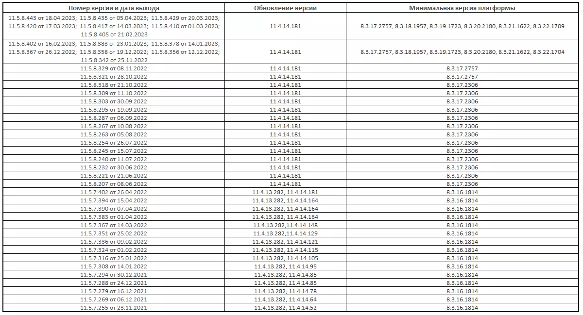 Учитывая, что на сегодняшний день актуальным развитием конфигурации «Управление торговлей» является редакция 11.5.12, то предлагаем пользователям подумать о переходе на последнюю версию конфигурации, тем более, что поддержка редакции 11.4 была завершена фирмой 1С с мая 2022г.