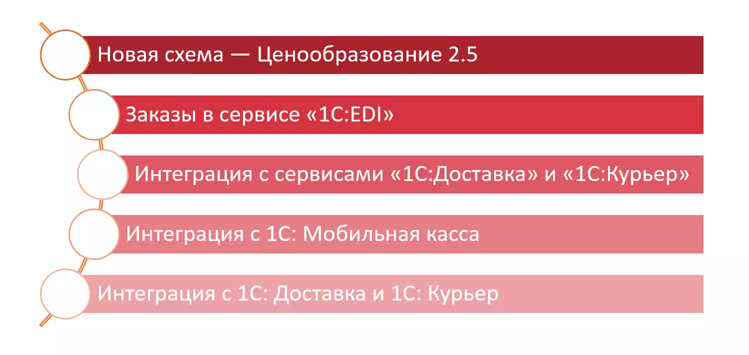 Кроме поддержки конфигурации на законодательном уровне, специалисты 1С постоянно работают над улучшением функциональных возможностей программы, совершенствуют технический уровень, разрабатывая новые схемы и способы интеграции с сервисами.