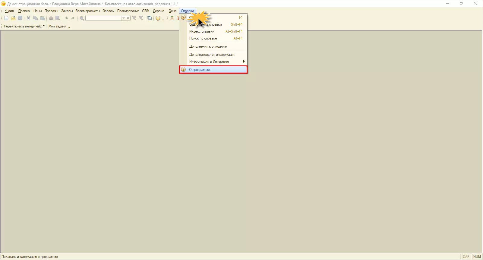 Шаг 2. Обновите версию 1С:КА до последней. Узнать номер своего релиза можно, нажав Справка – О программе.