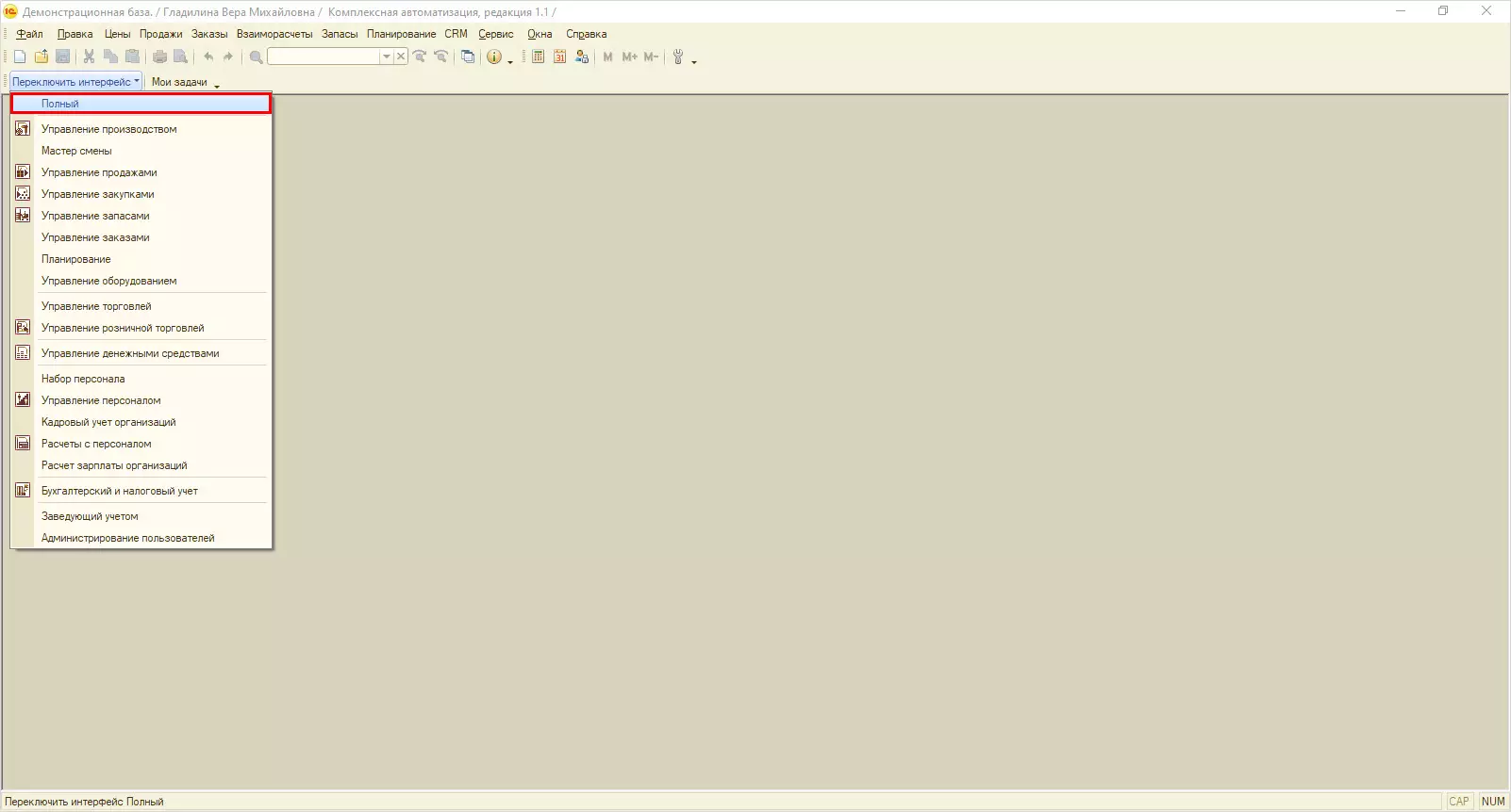 Шаг 3. Чтобы не искать тот или иной пункт, и чтобы были доступны нужные разделы меню, переключитесь в полный интерфейс, нажав одноименную кнопку на панели задач.