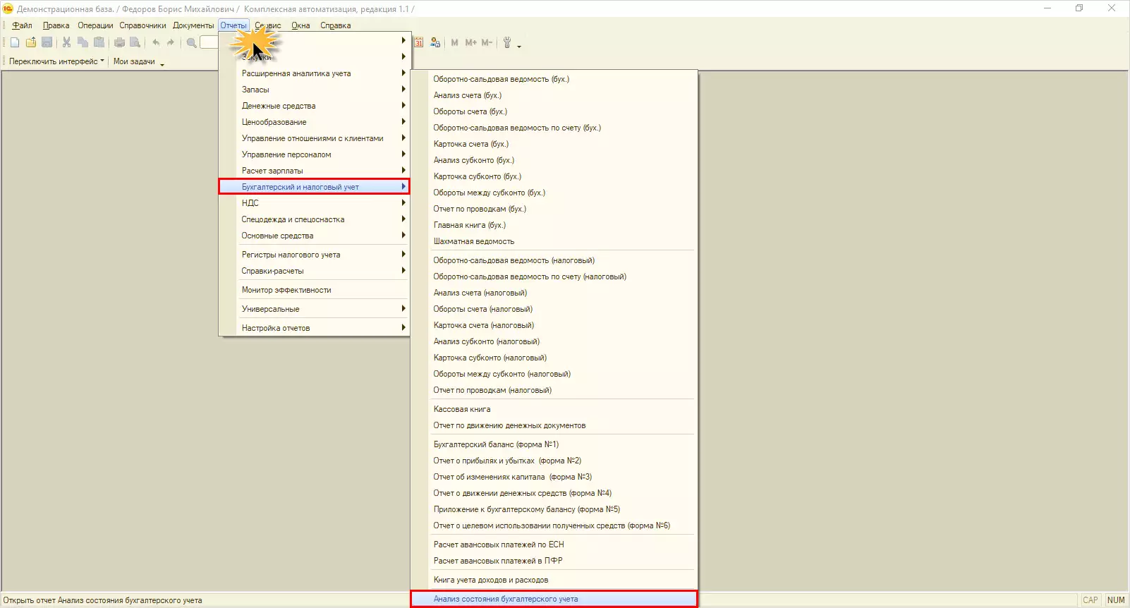 Проведите Анализ состояния бухгалтерского учета – раздел Отчетность – Бухгалтерский и налоговый учет.