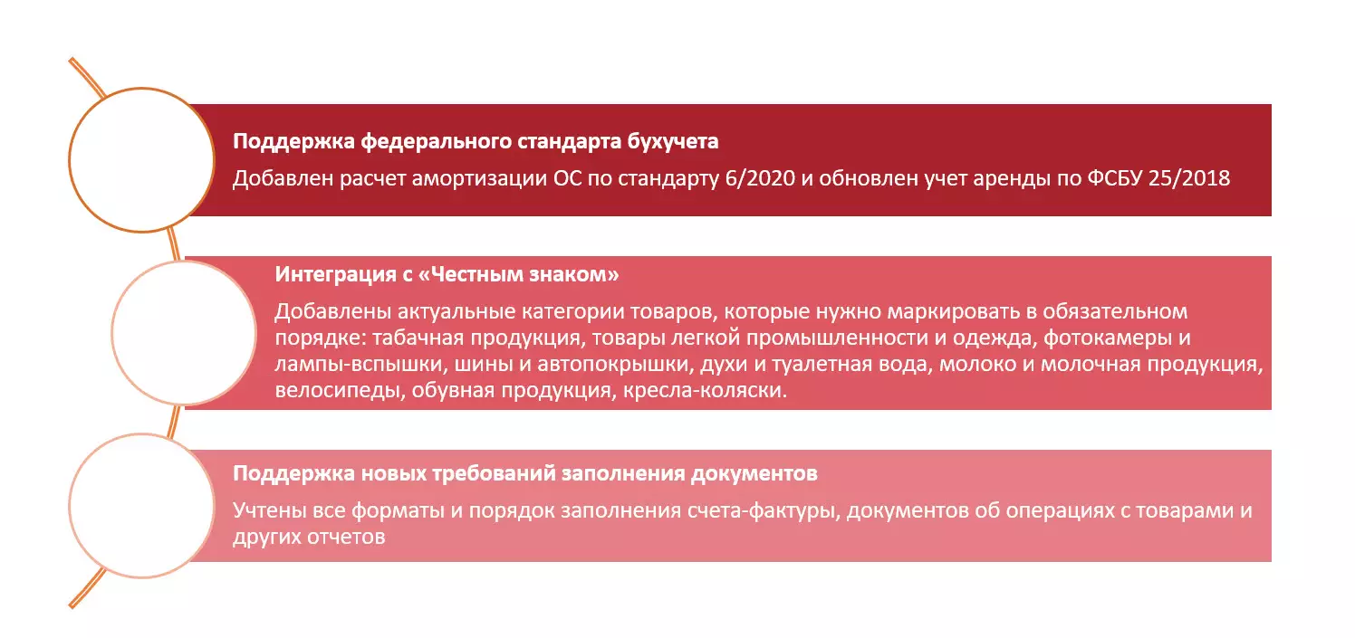 С обновлениями улучшается функционал программы, автоматизируя новые операции, способы оформления документов.
