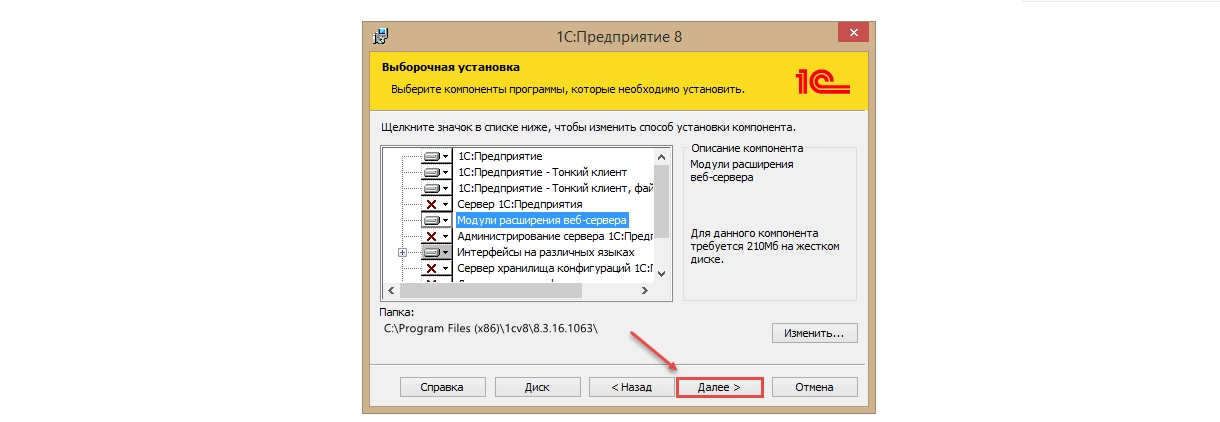В процессе жмем «Далее» без изменений, так как все необходимые компоненты уже выбраны в качестве настроек по умолчанию.
