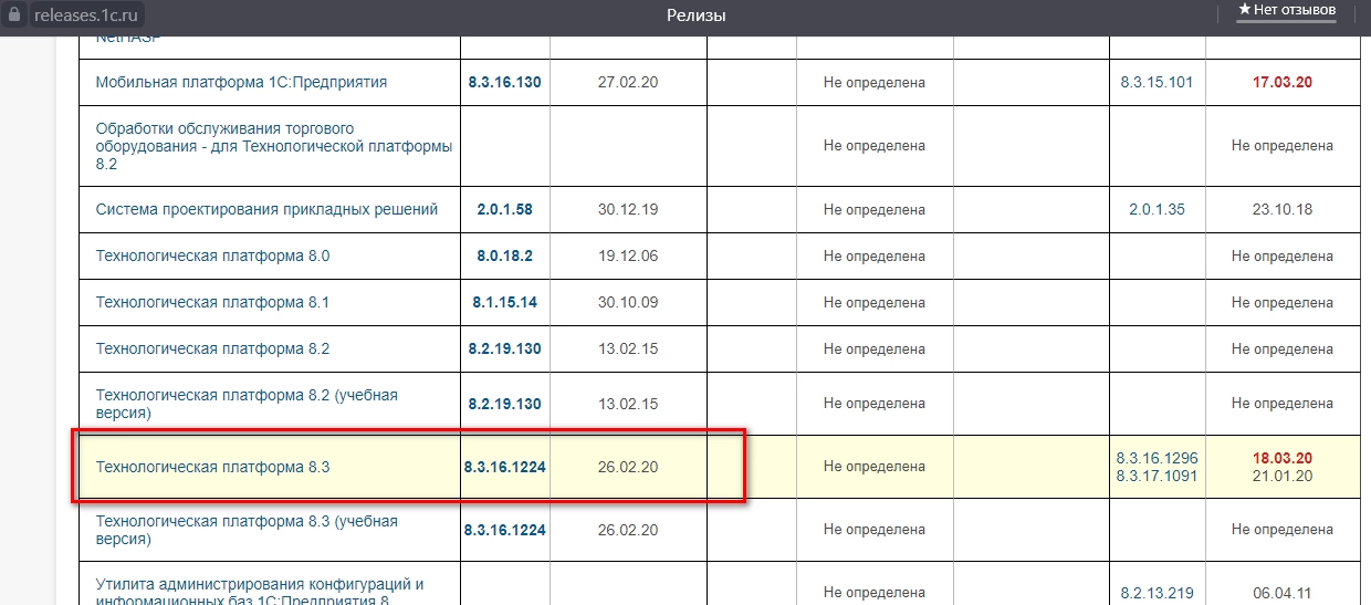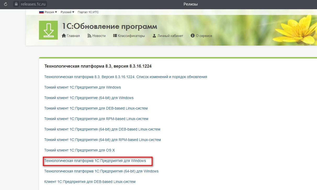 Среди технологических дистрибутивов выбираем нужную нам версию платформы.