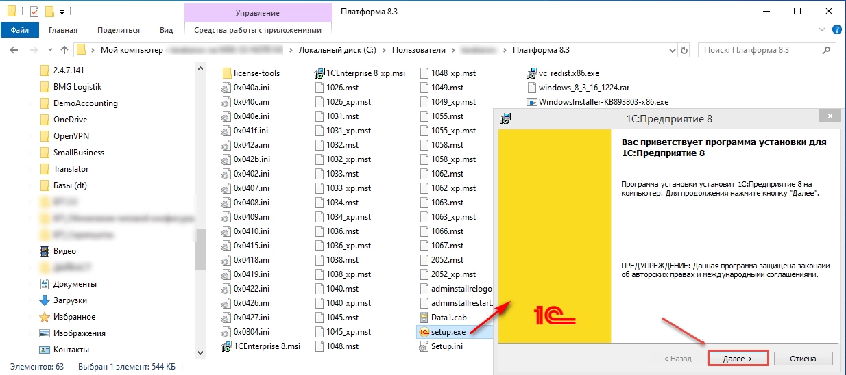 Двойным щелчком на файле «setup.exe» запускаем программу установки.