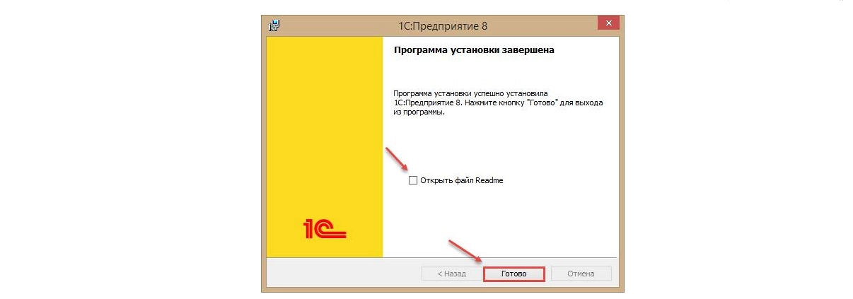 Если ознакомление со справочной информацией не планируется, снимаем галочку с «Открыть файл Readme» и нажимаем кнопку «Готово», тем самым завершая установку.