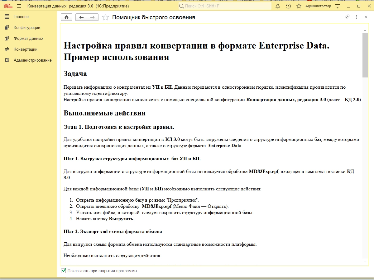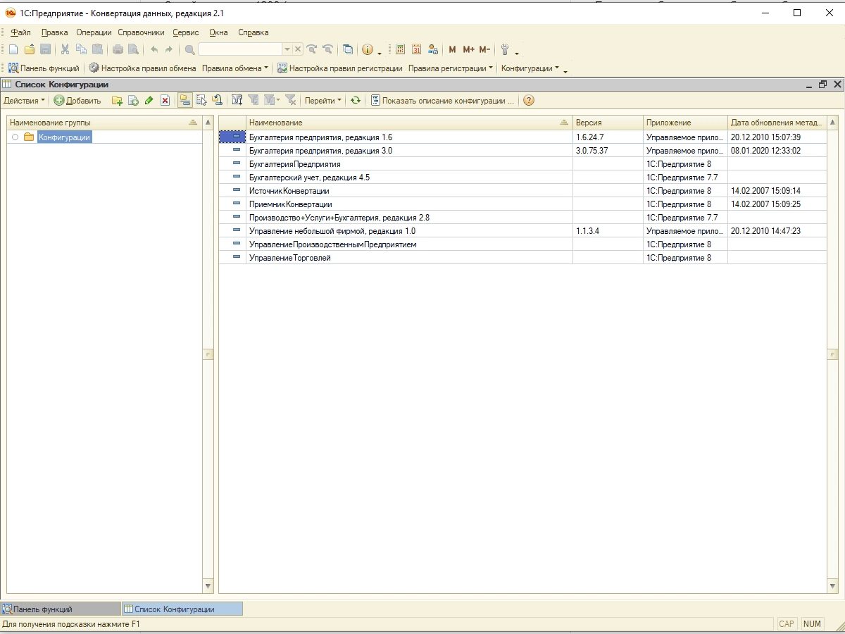 Если нужно построить произвольный план обмена, разработчики 1С прибегают к программе «Конвертация данных». «КД» редакции 2.0 и редакции 3.0 используются для универсального обмена (2.0) и EnterpriseData (3.0).