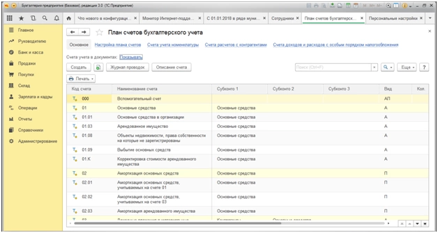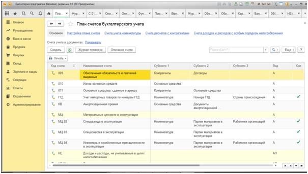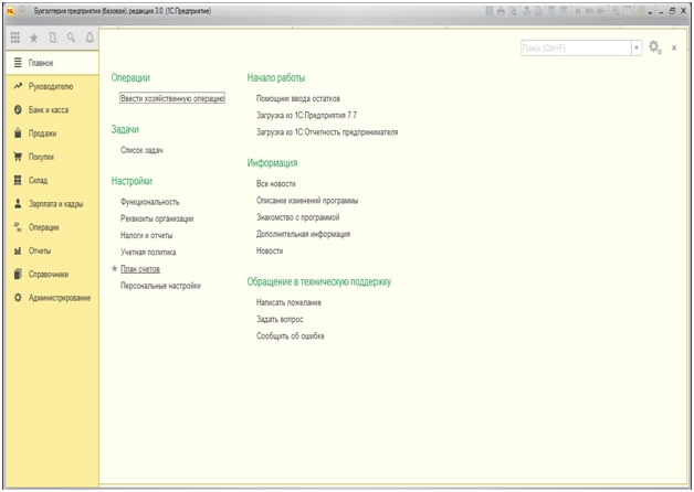 В системе 1С 8.3. Бухгалтерия План счетов находится в Главном меню/Настройки/План счетов.