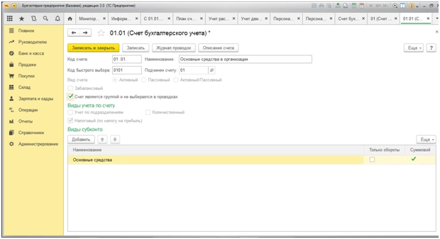 Если счет является группировочным, то есть имеет субсчета, необходимо в нем проставить галочку «Счет является группой и не участвует в проводках».