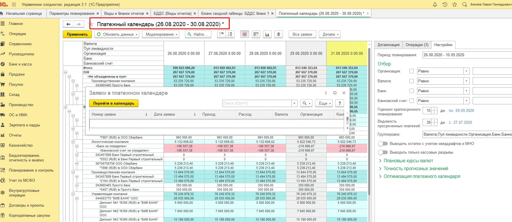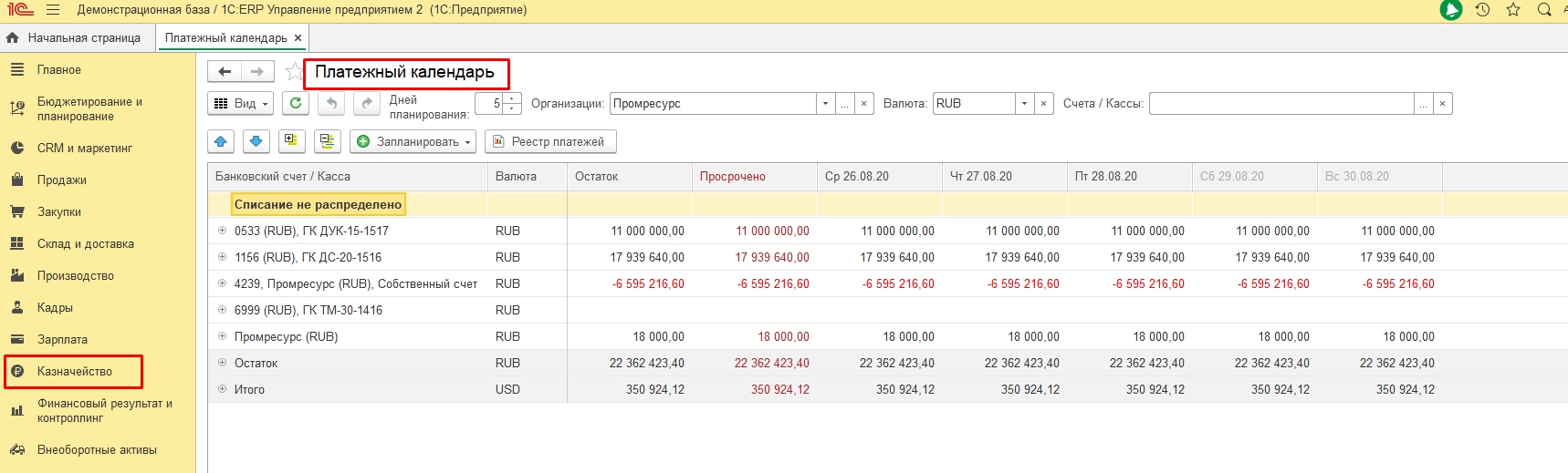 В разных компаниях платежных дней может быть разное количество, от одного дня в неделю до пяти, поэтому структура разделов платежного календаря может меняться. В зависимости от сферы деятельности компании будут отличаться и источники данных для составления платежного календаря. О других возможностях автоматизации казначейства на базе 1С вы также можете прочитать на нашем сайте.