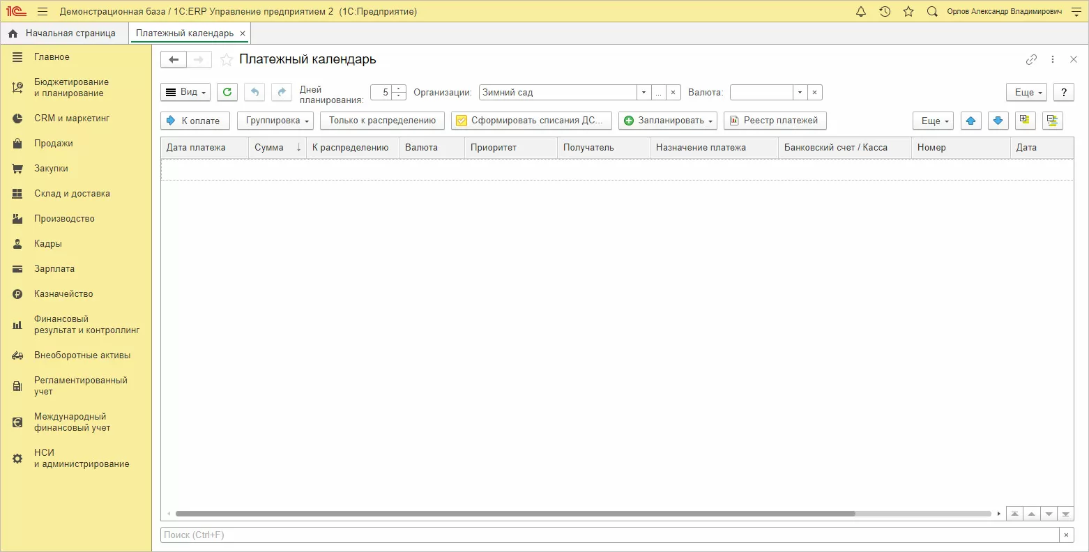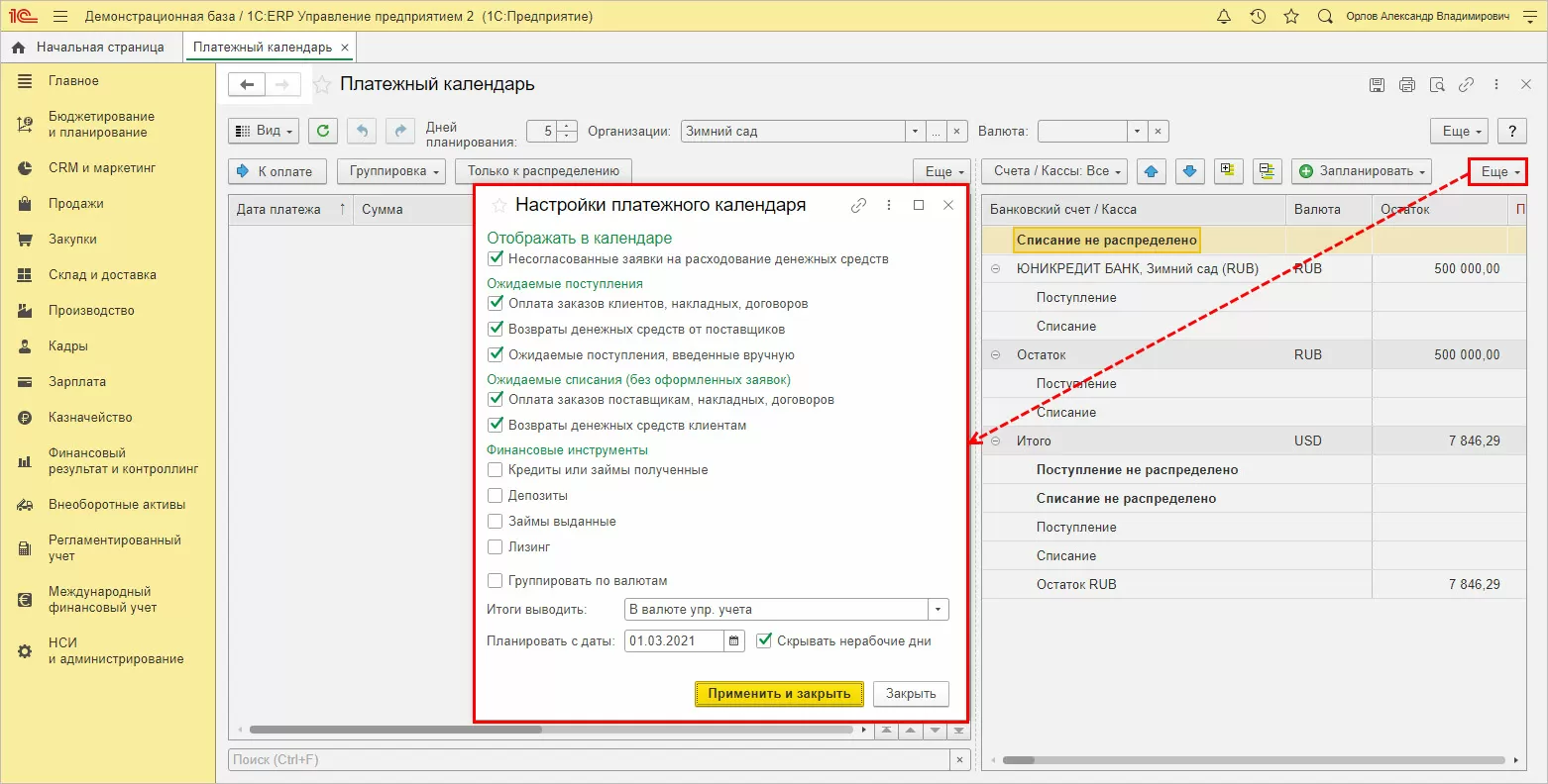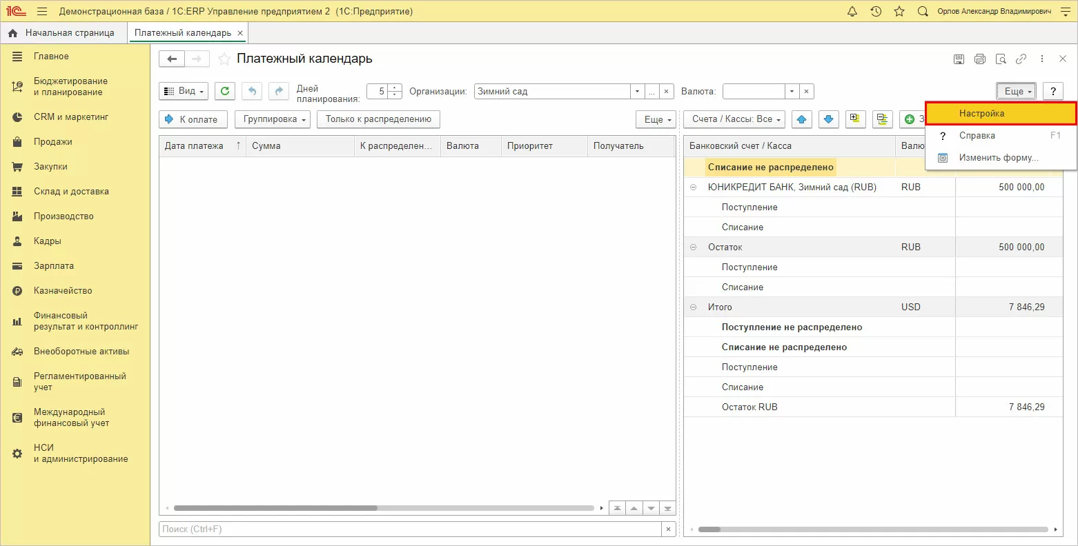 - Настройка платежного календаря в 1С:ERP Управление предприятием 2