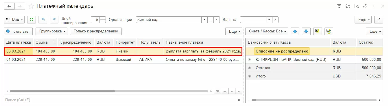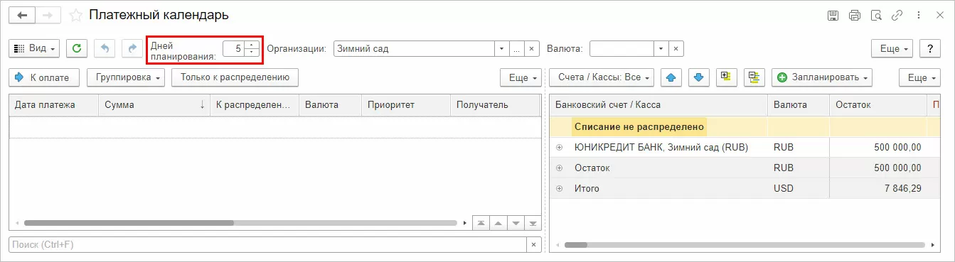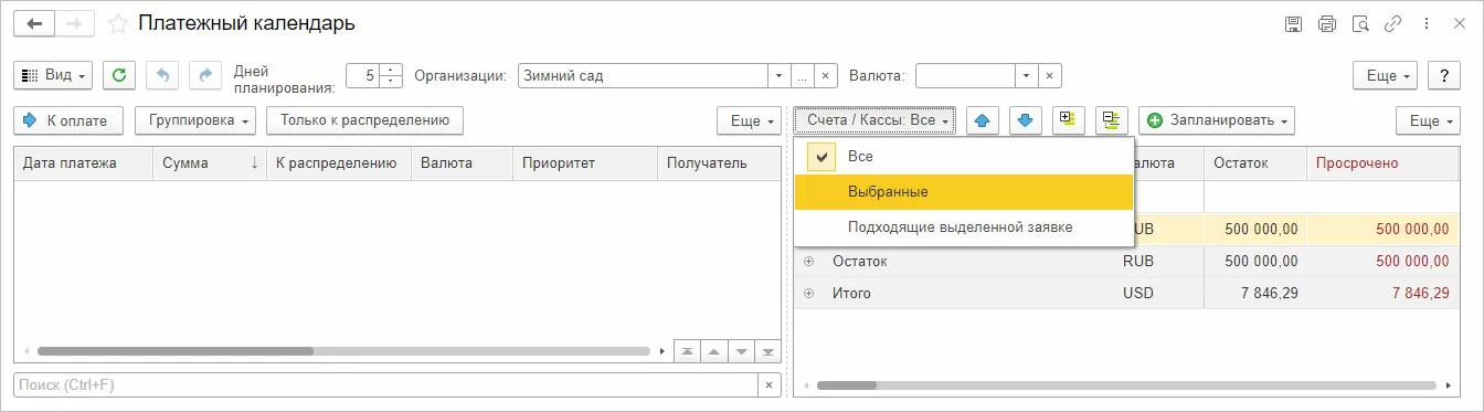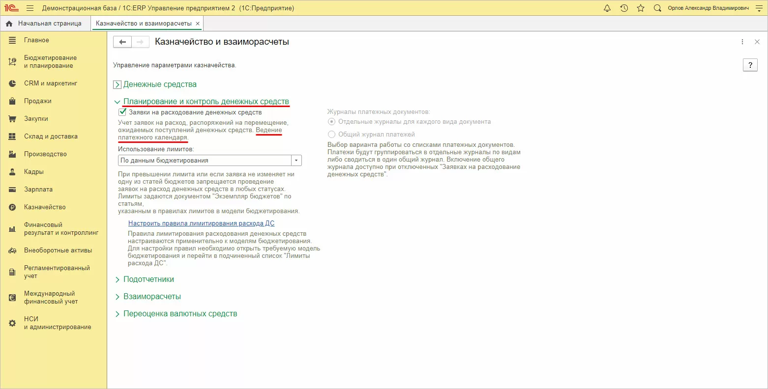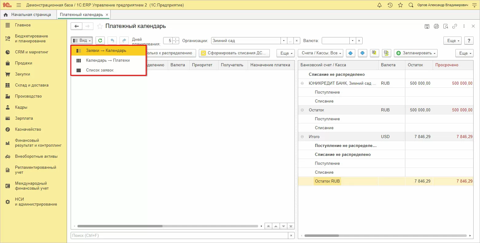 - Настройка платежного календаря в 1С:ERP Управление предприятием 2