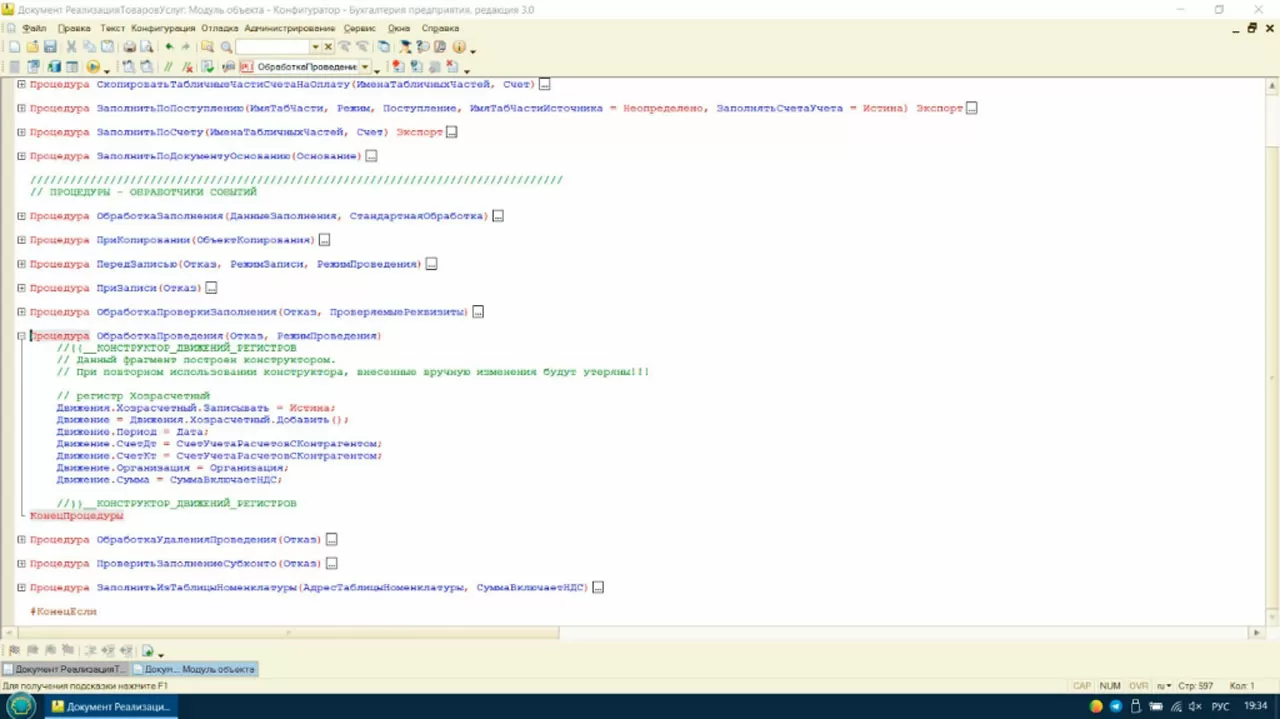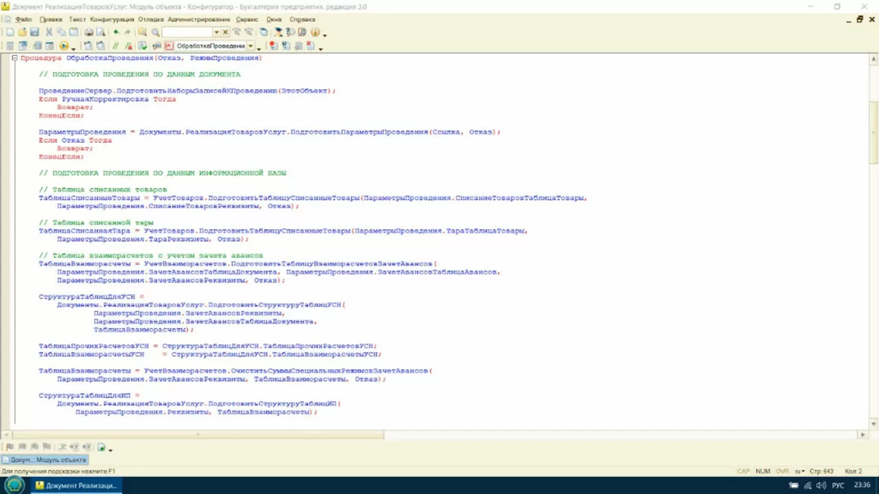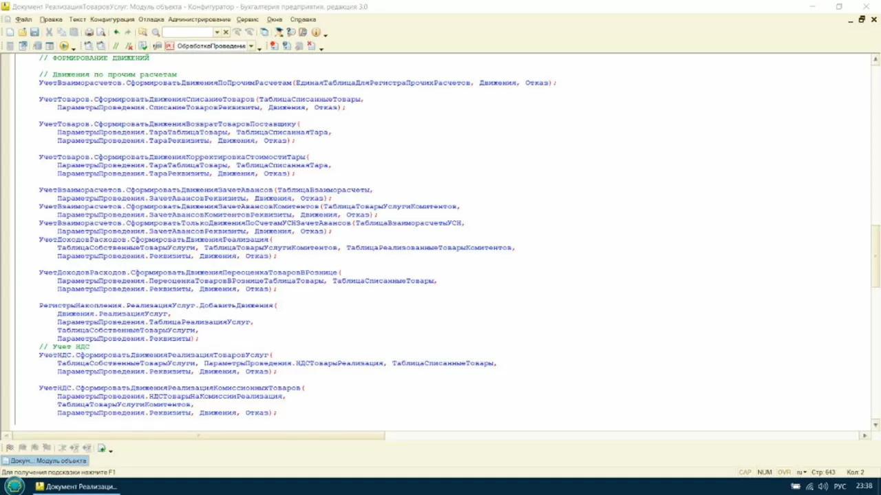 А как реализуется такая возможность? На каждом этапе проверки добавляется новый код. Возможности проведения, полнота заполнения данных, необходимость записывать документ в разных разрезах – вот причина того, что наш код растет как на дрожжах.