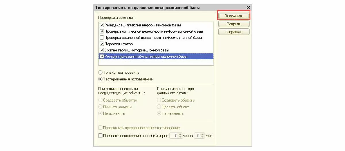 3. Установите все галочки, как на картинке. Нажмите «Выполнить».