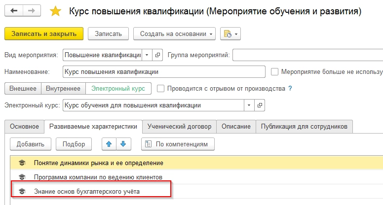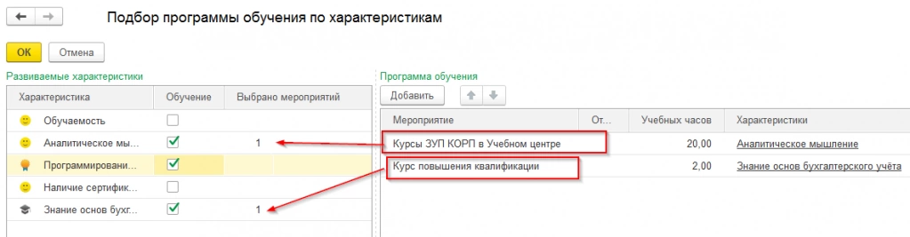 Для того чтоб эти мероприятия отразились в подборе, необходимо в их описании проставить развиваемые характеристики: