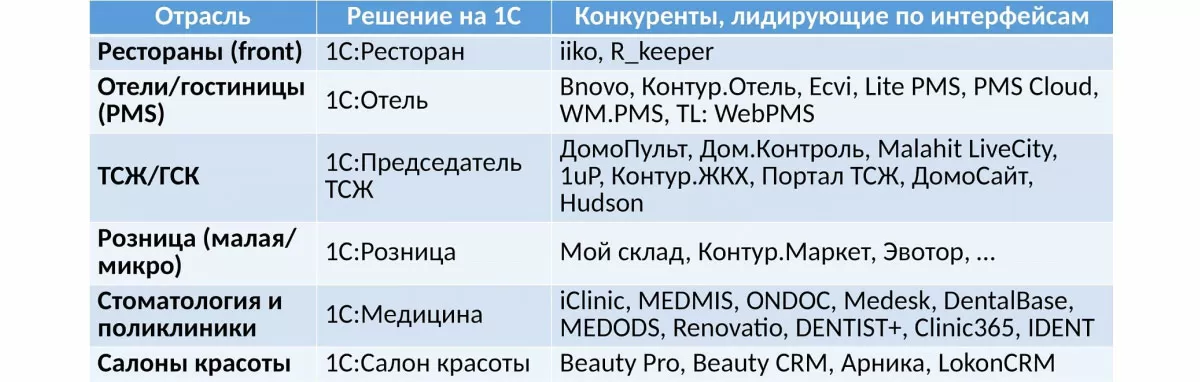 В каких условиях интерфейсы 1С уступают конкурентам?