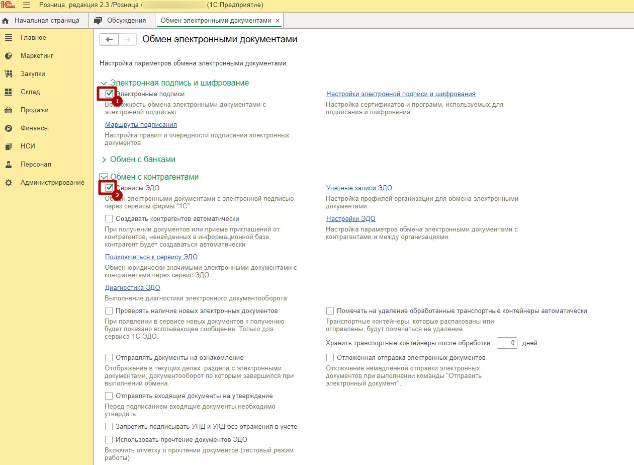 Шаг 1. Администрирование → Обмен электронными документами →