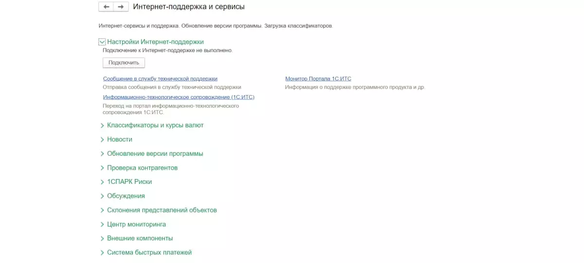 Шаг 1. Администрирование → Обслуживание - Интернет поддержка и сервисы →