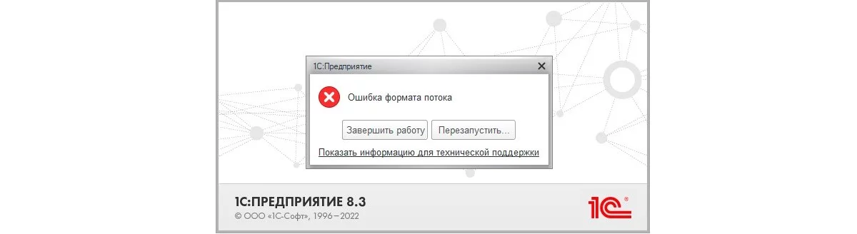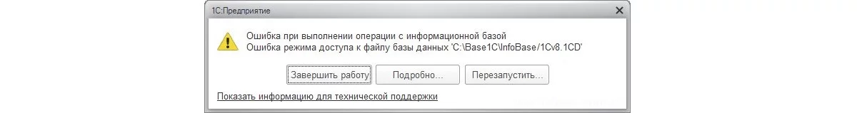 2. 1С внезапно закрывается с сообщением Общая ошибка платформы – как исправить?