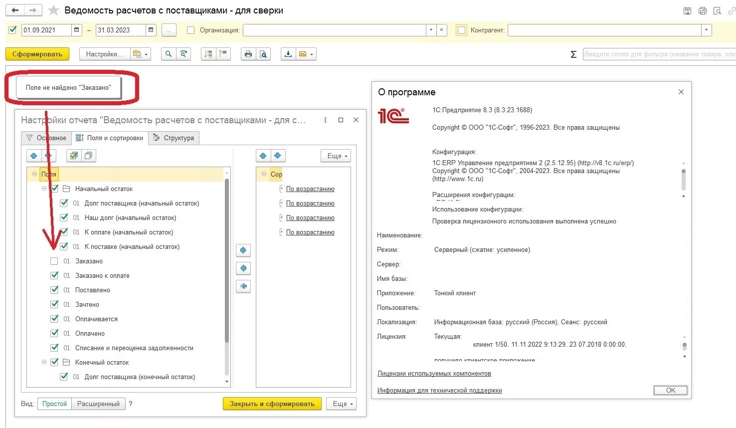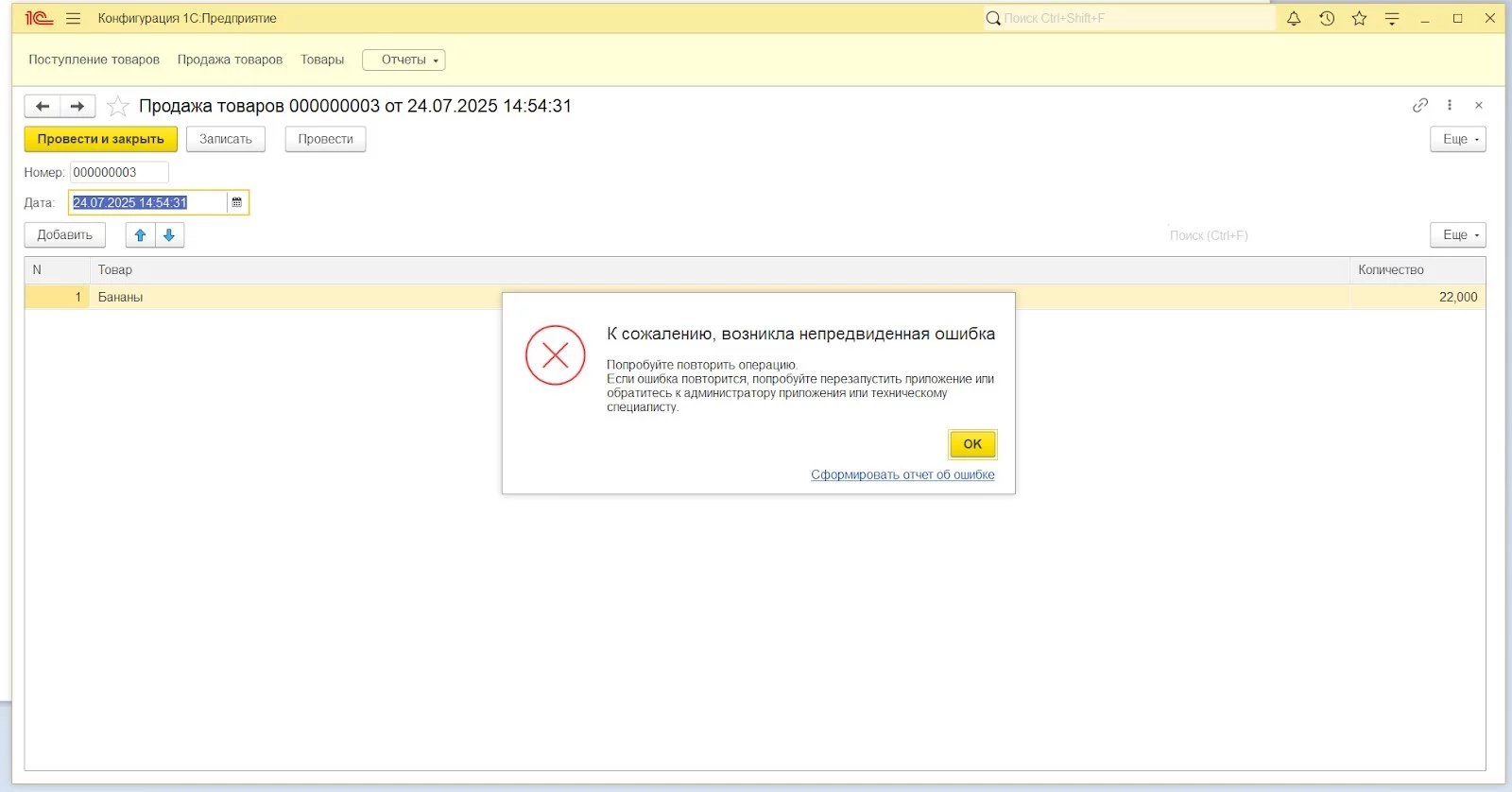 - Если ошибка возникает в конкретном отчете или документе – обновите конфигурацию до последней версии (требует прав Конфигуратора или админа).
