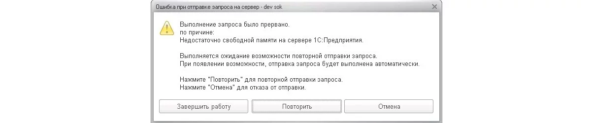 5. 1С долго думает, а потом выдает Недостаточно памяти или Out of memory – что делать?