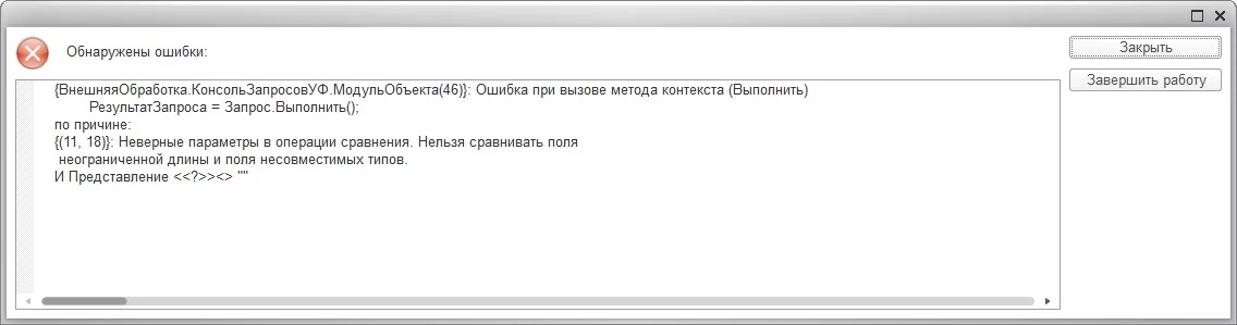 Запрос отчета пытается сравнить или обработать данные разного типа (например, число и строку). Что делать пользователю:
