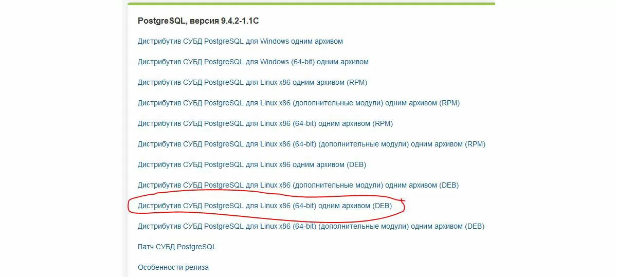 1.Скачиваем указанную позицию дистрибутива СУБД PostgreSQL: