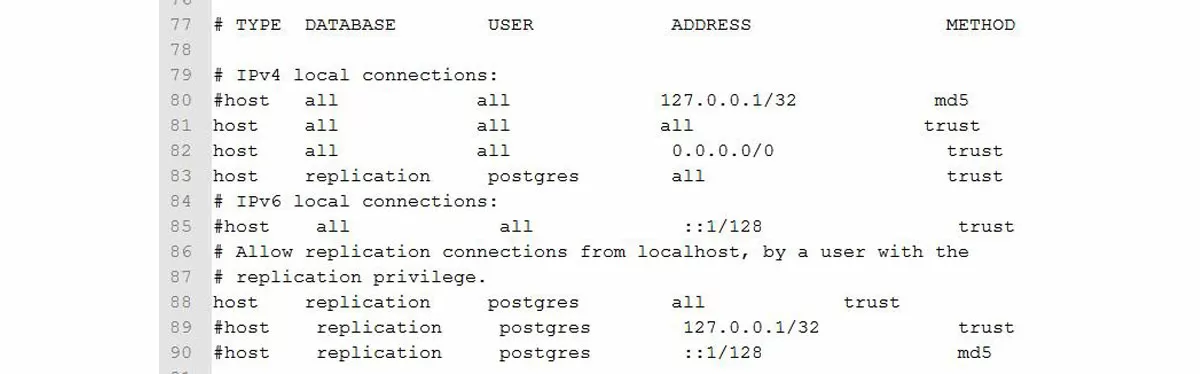 Для доступа к серверу редактируем параметры в файле pg_hba.conf