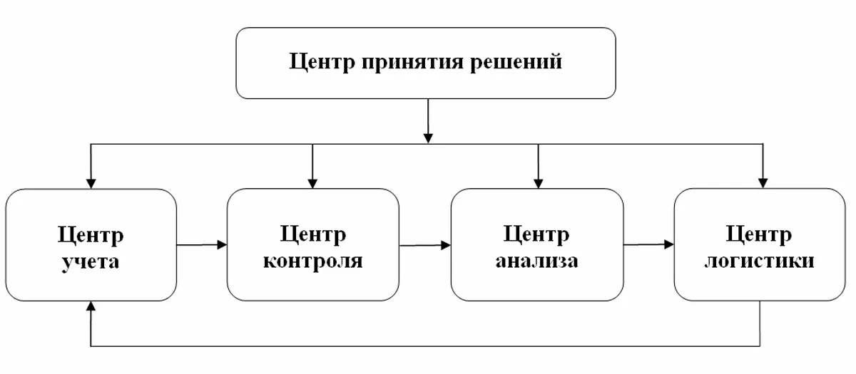 - Центр принятия решения отвечает за принятие и организацию выполнения решения: учет, контроль, анализ и логистику. Это, например, управляющая компания всего предприятия, система управления подразделением, отделом, проектом.