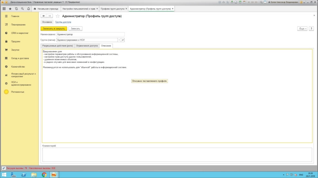 В заключение хотелось бы отметить, что фирма 1С в качестве разработчика позаботилась о наличие широких возможностей для администраторов в части редактирования прав в своих программных решениях. И если на первый взгляд эти инструменты могут показаться сложными и избыточными, то в дальнейшем, особенно при попытке построить эффективную схему доступа в условиях многоуровневой, разветвленной структуры персонала на предприятии или в организации, становится ясно, что функционал программы вполне соответствует реальным потребностям.