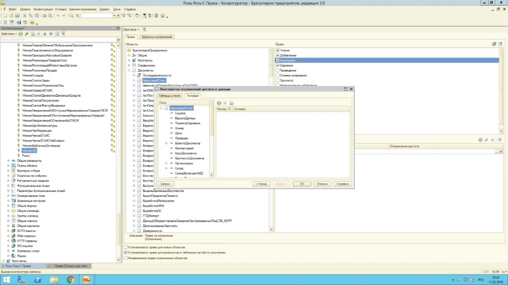 Конструктор ограничений доступа к данным позволяет создать условие, по которому будет ограничен доступ.