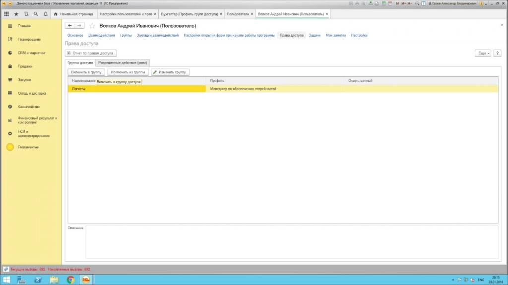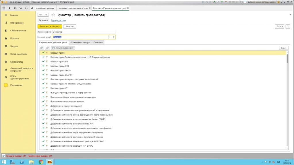 Таким образом, установить доступ или изменить права в 1С можно добавив пользователя в ту или иную группу в пользовательском режиме.