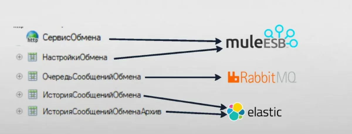 - Настройки и сервис обмена остаются, но внешняя часть меняется на MuleESB;