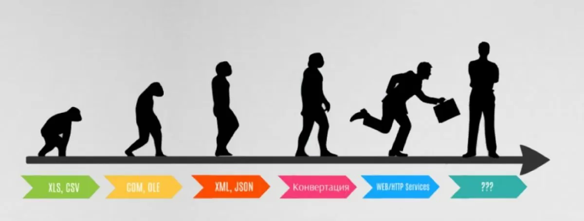 Рассмотрим популярнейшие инструменты интеграции на «эволюционной» шкале, отображающей тот порядок, как их осваивают программисты-разработчики.