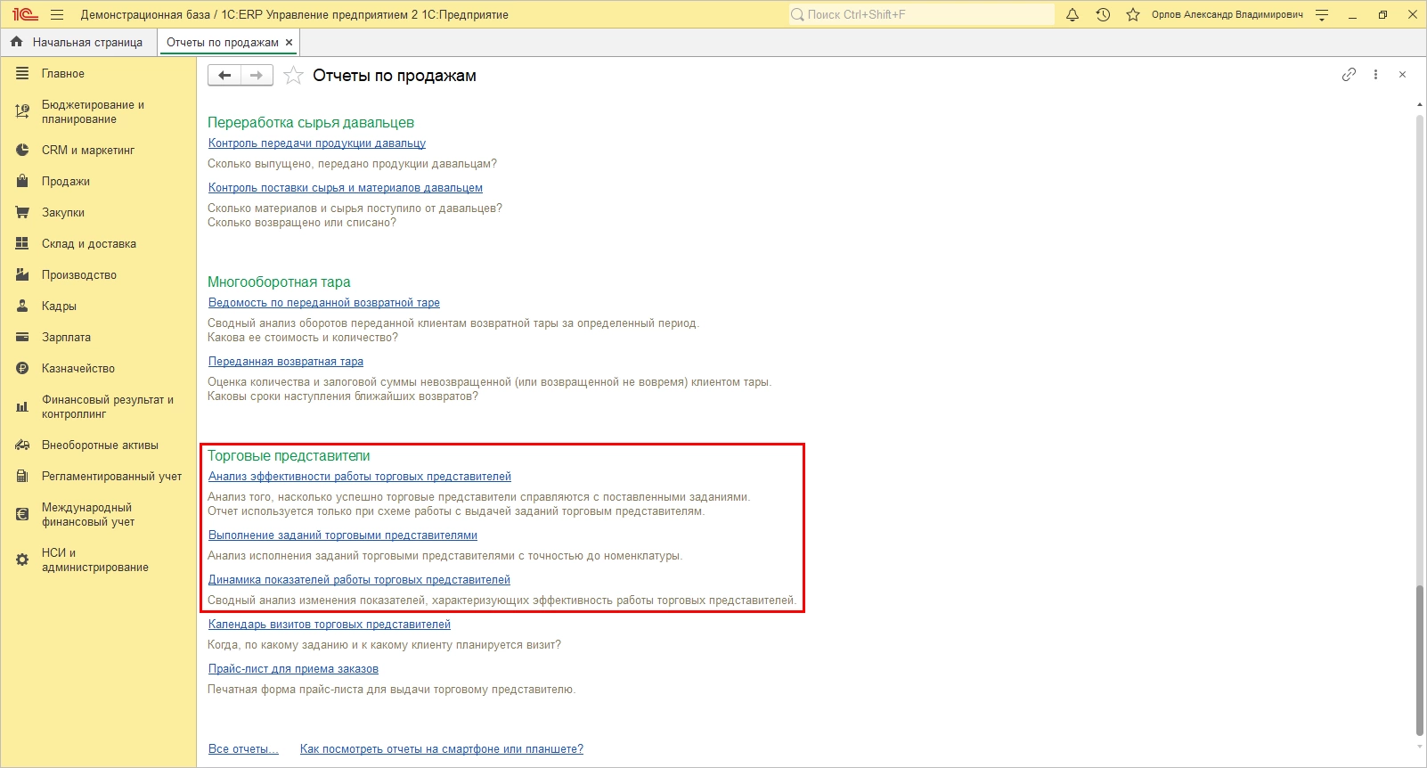 Еще одна группа отчетов, позволяющая оценить работу торговый представителей: