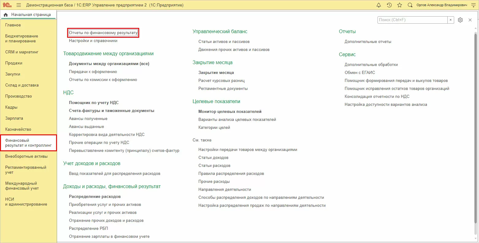 Например, в «1С:ERP» для этого предусмотрен раздел «Финансовый результат и контроллинг», включающий блок вспомогательных отчетов – «Отчеты по финансовому результату».