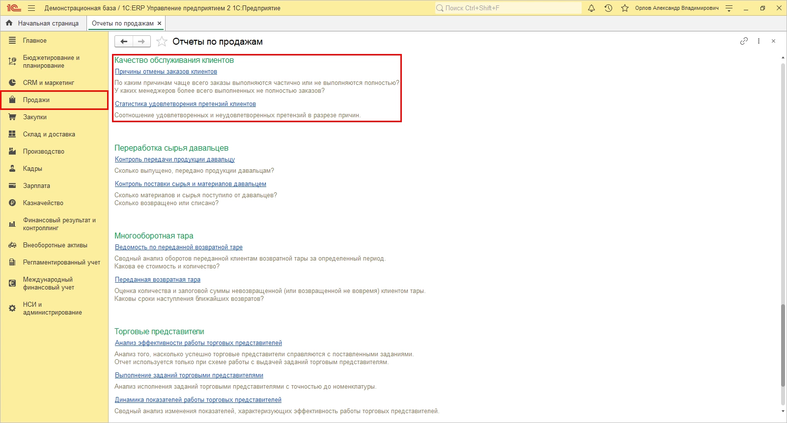 Прибыль компании напрямую зависит от работы ее персонала. В программе «1С:ERP», среди прочих отчетов по продажам, имеется блок отчетов, позволяющих определить качество обслуживания клиентов, что в свою очередь позволяет оценить качество работы персонала.