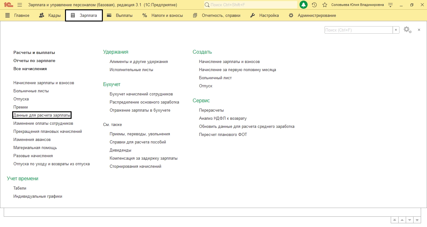 Перейдите в раздел «Зарплата-Данные для расчета зарплаты»