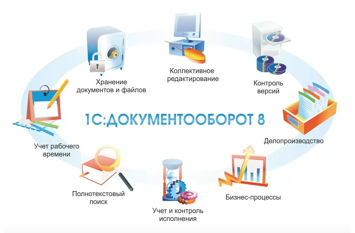 Программа «1С:Документооборот 8 КОРП» – это сложный программный продукт и одновременно очень простая информационная система. Простота заключается в следующих ключевых возможностях системы для целей документооборота: