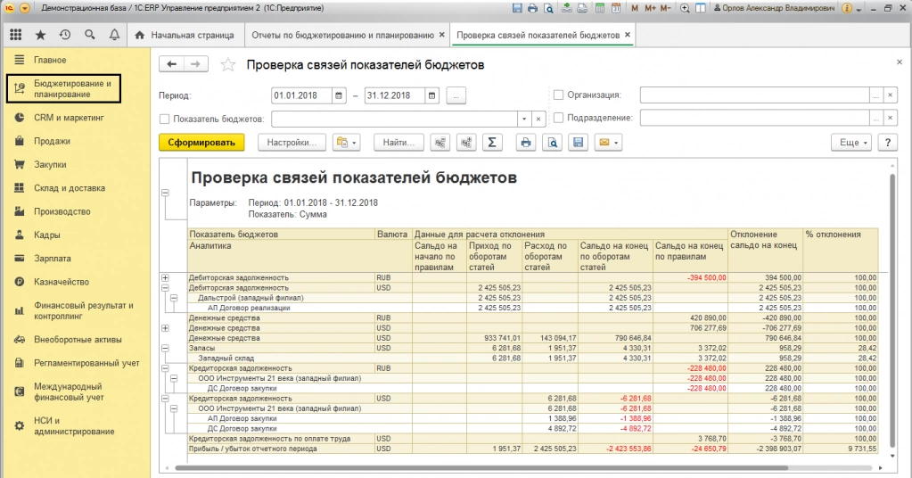 Модуль бюджетирования включает в себя инструменты финансового планирования и контроля, которые позволяют вести учет доходов и расходов на уровне центров финансовой ответственности и организации в целом, что дает возможность провести анализ фактической и прогнозируемой информации бюджетирования.
