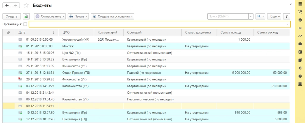 - Проводить сценарный анализ при формировании бюджетов;